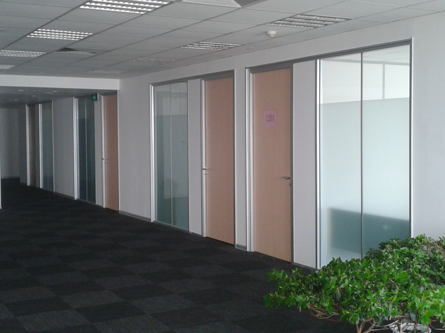建設(shè)銀行青島市分行總部大廈項(xiàng)目:HX-85款氟碳噴涂啞光黑色單層10mm、雙層5mm鋼化玻璃隔斷,隔斷配套12mm防火木門。先后為建設(shè)銀行多個(gè)分支機(jī)構(gòu)提供隔斷服務(wù),并建立長期的合作關(guān)系。