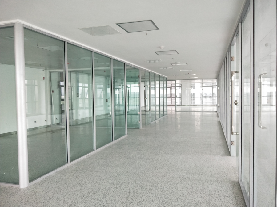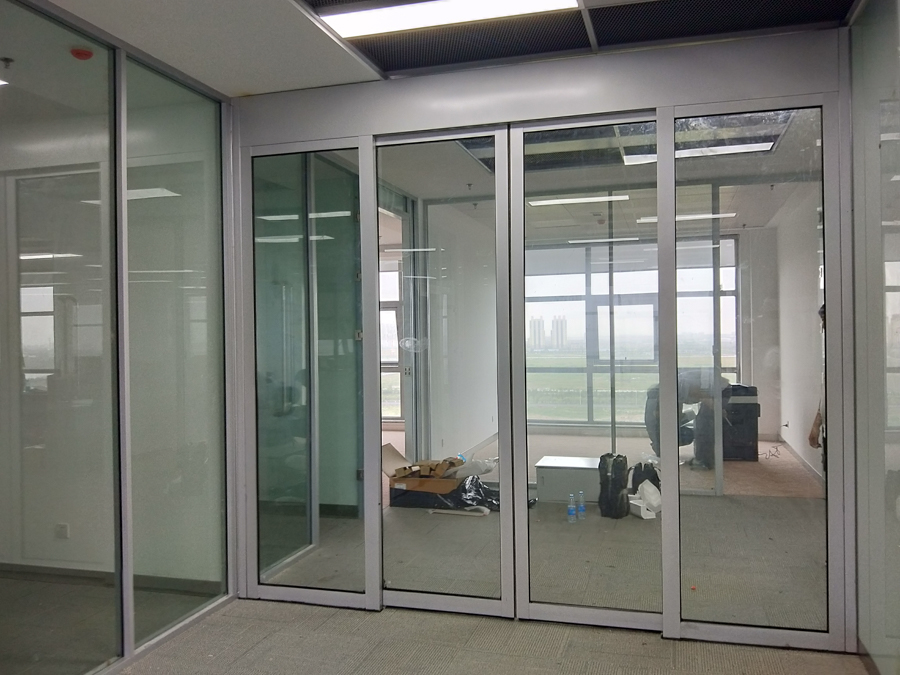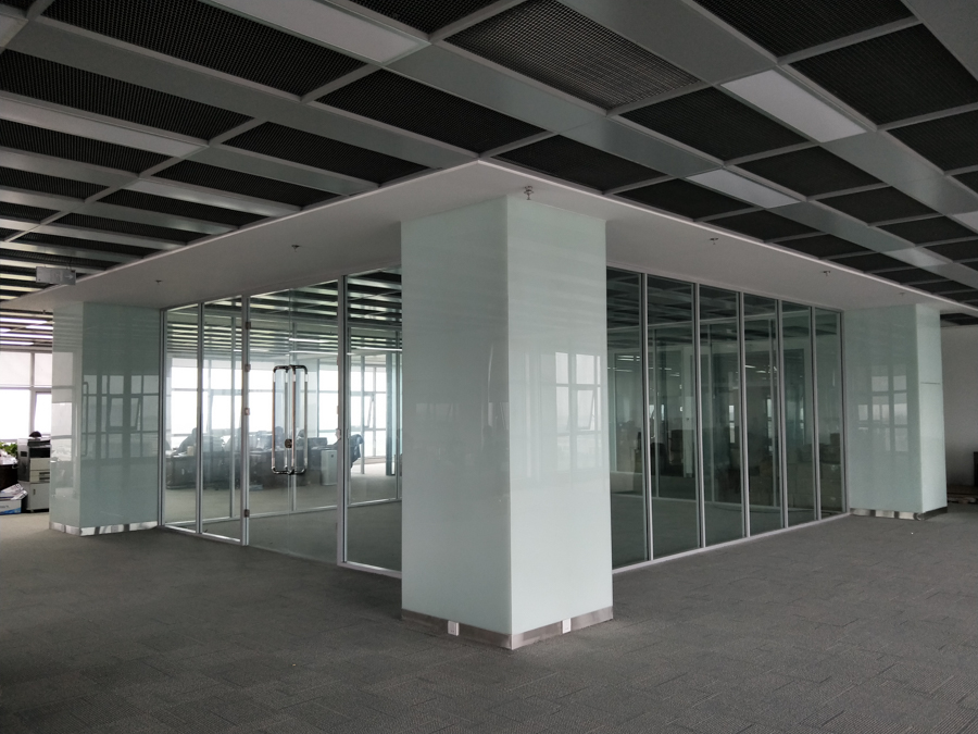 青島鼎信通訊股份有限公司產(chǎn)業(yè)園項(xiàng)目:HX-85款氟碳噴涂細(xì)銀色單層12mm鋼化玻璃隔斷,隔斷配套12mm鋼化玻璃門扇。7.8號公寓樓淋浴玻璃隔斷。