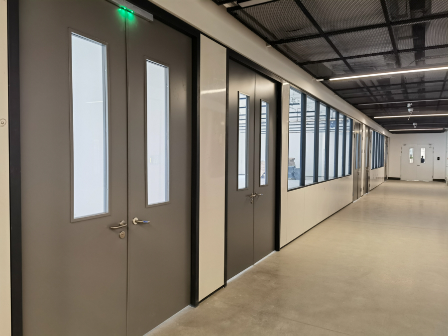 海爾創(chuàng)牌中心項目:HX-85款氧化銀色單層10mm鋼化玻璃,隔斷配套實木復(fù)合門。