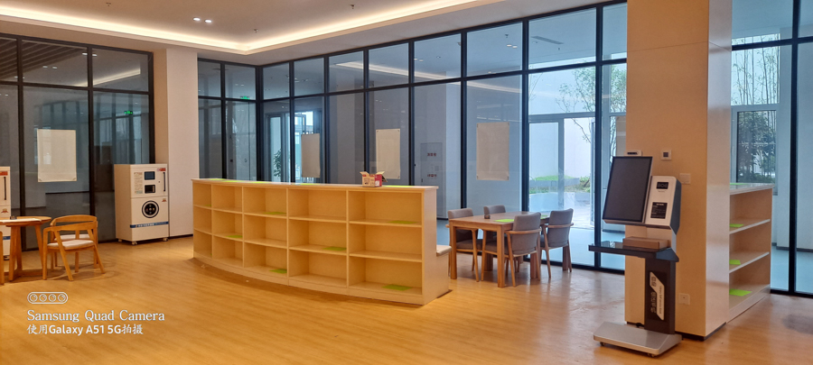 海爾云谷項目:HX-85款氟碳噴涂單層12mm鋼化玻璃,隔斷配套實木復(fù)合。電梯廳自動門系統(tǒng)采用松下全玻自動門及門禁系統(tǒng)。